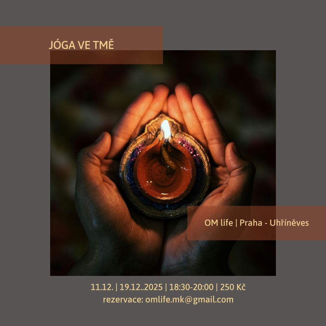 Právě teď si doma zapalujeme svíčky, rozsvěcujeme světýlka, ale jaké to je, když rozsvítíme své vnitřní světlo? To objevíme na nové lekci JÓGA VE TMĚ. Těšit se můžete na jemné protažení, klid a sílu dechu, očistnou techniku trátak a jóga nidru. Protože byl předvánoční termín zaplněný dřív, než vyšel ven, přidávám ještě jeden. Vždy 18:30 - 20:00 / cena 250 Kč.